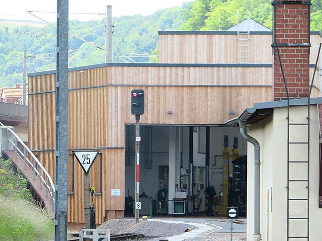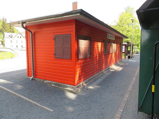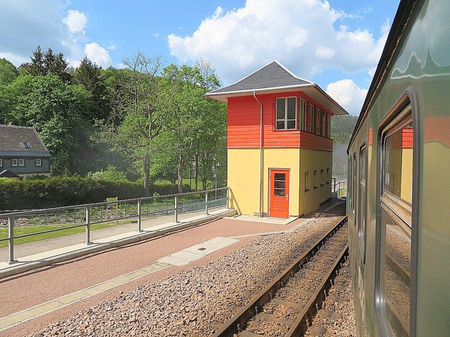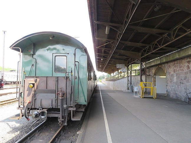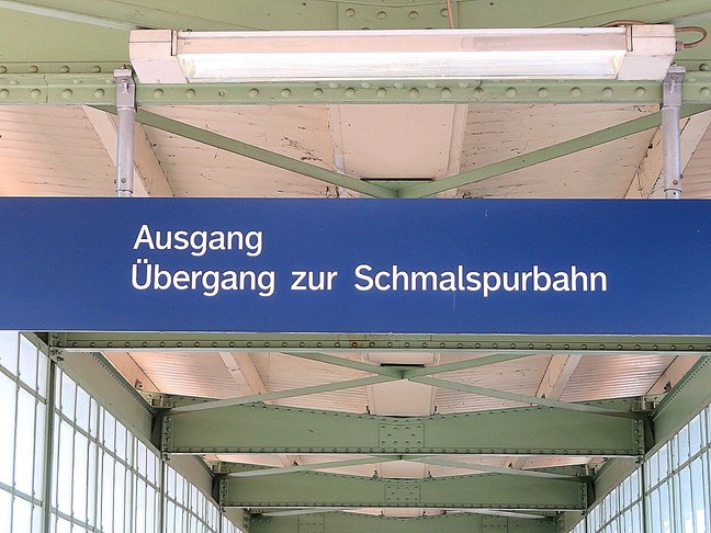 ![]() Mit dem Fahrstuhl eine Etage nach unten und dann einige Meter durch die Unterführung und man steht am Bahnsteig der Weißeritztalbahn |