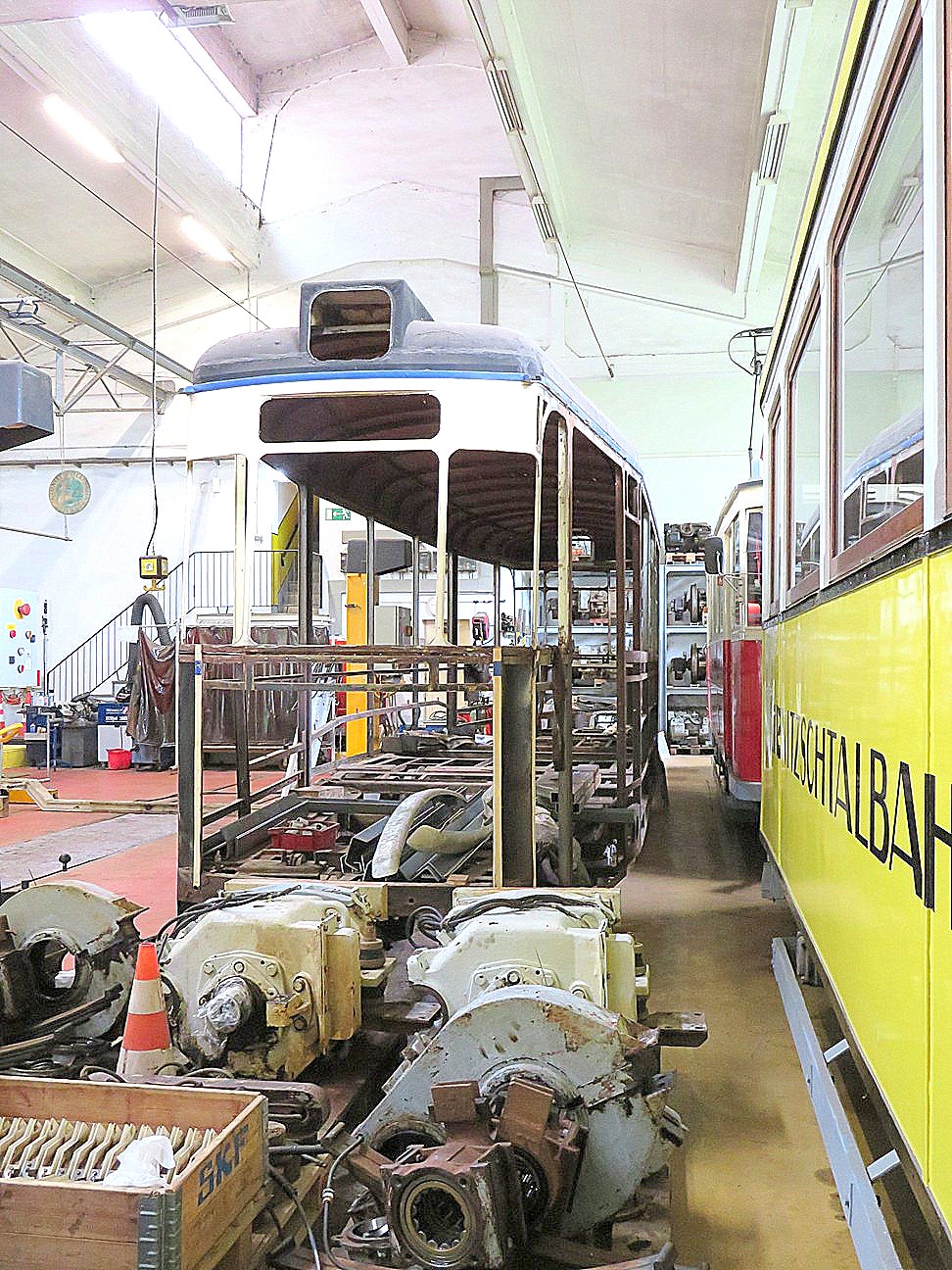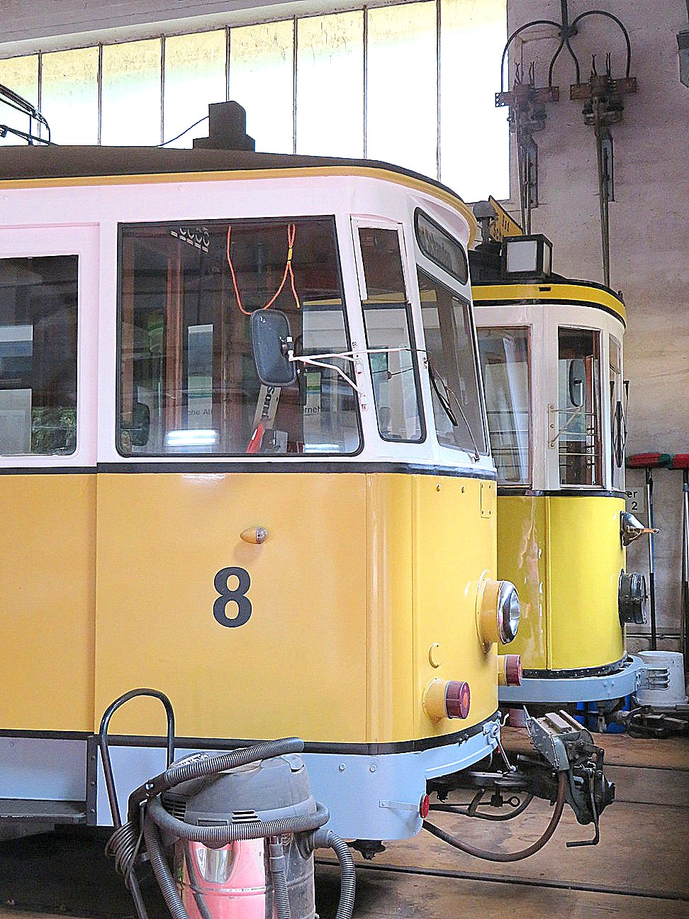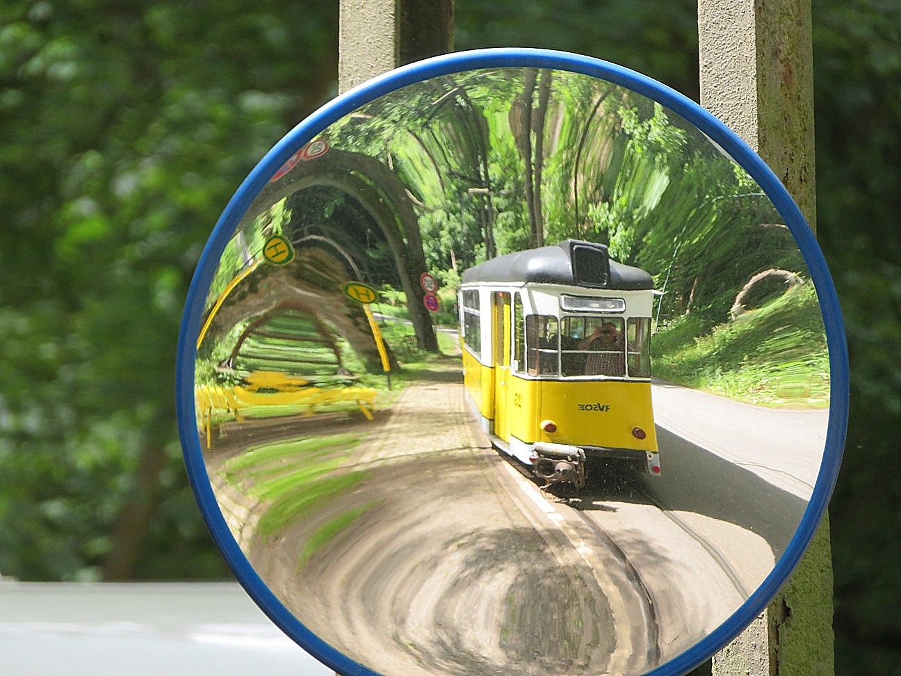 Der Gegenzug mit TW 6 an der Schneiderweiche