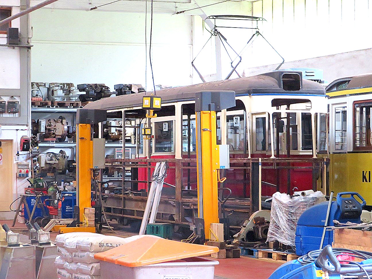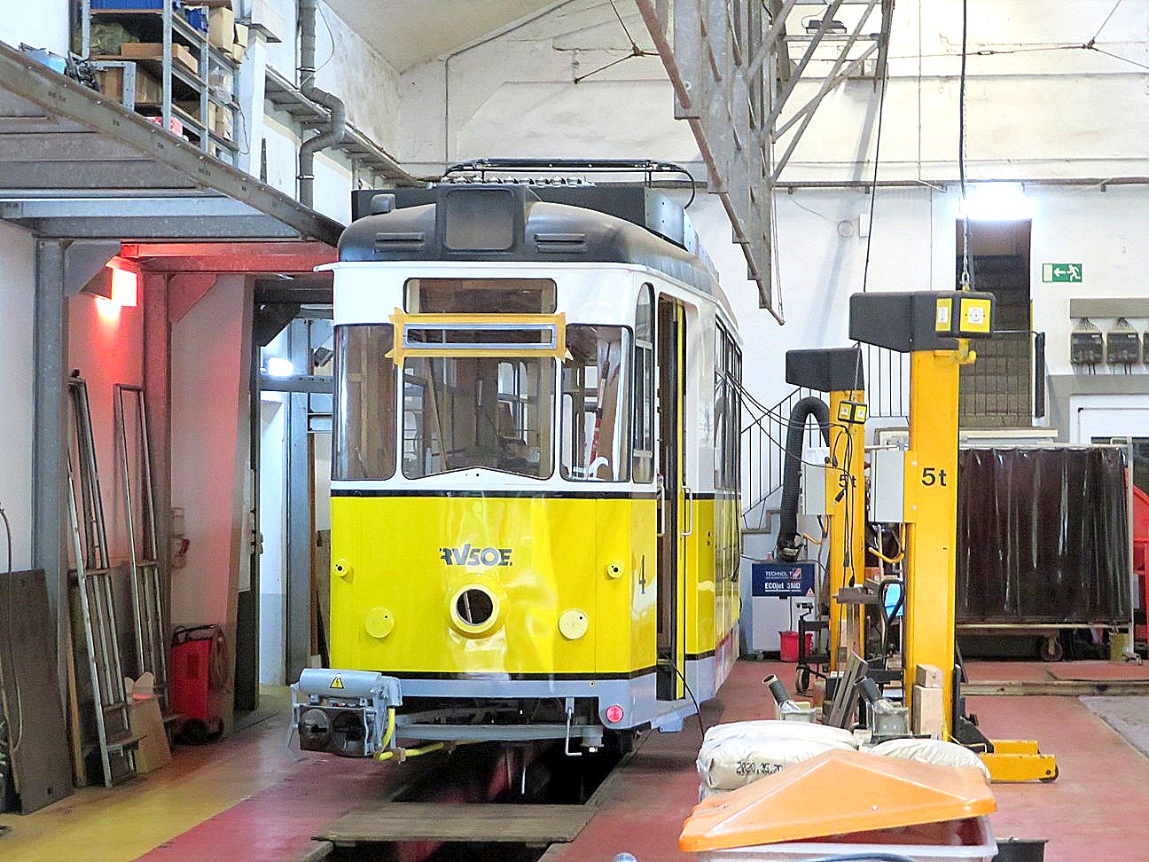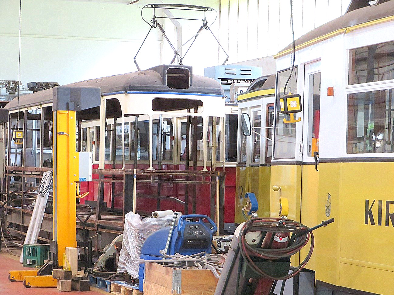 Der Gegenzug mit TW 6 an der Schneiderweiche