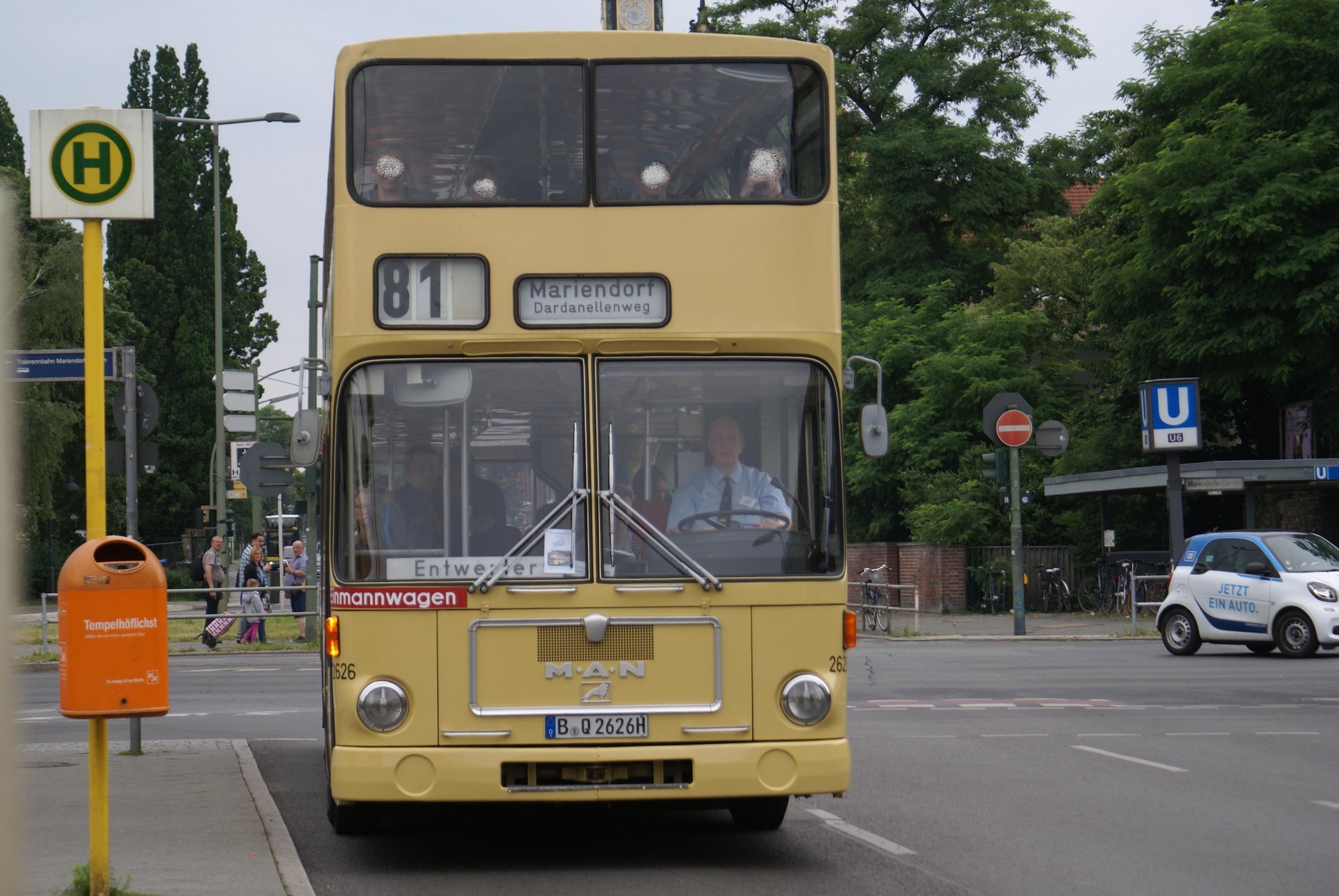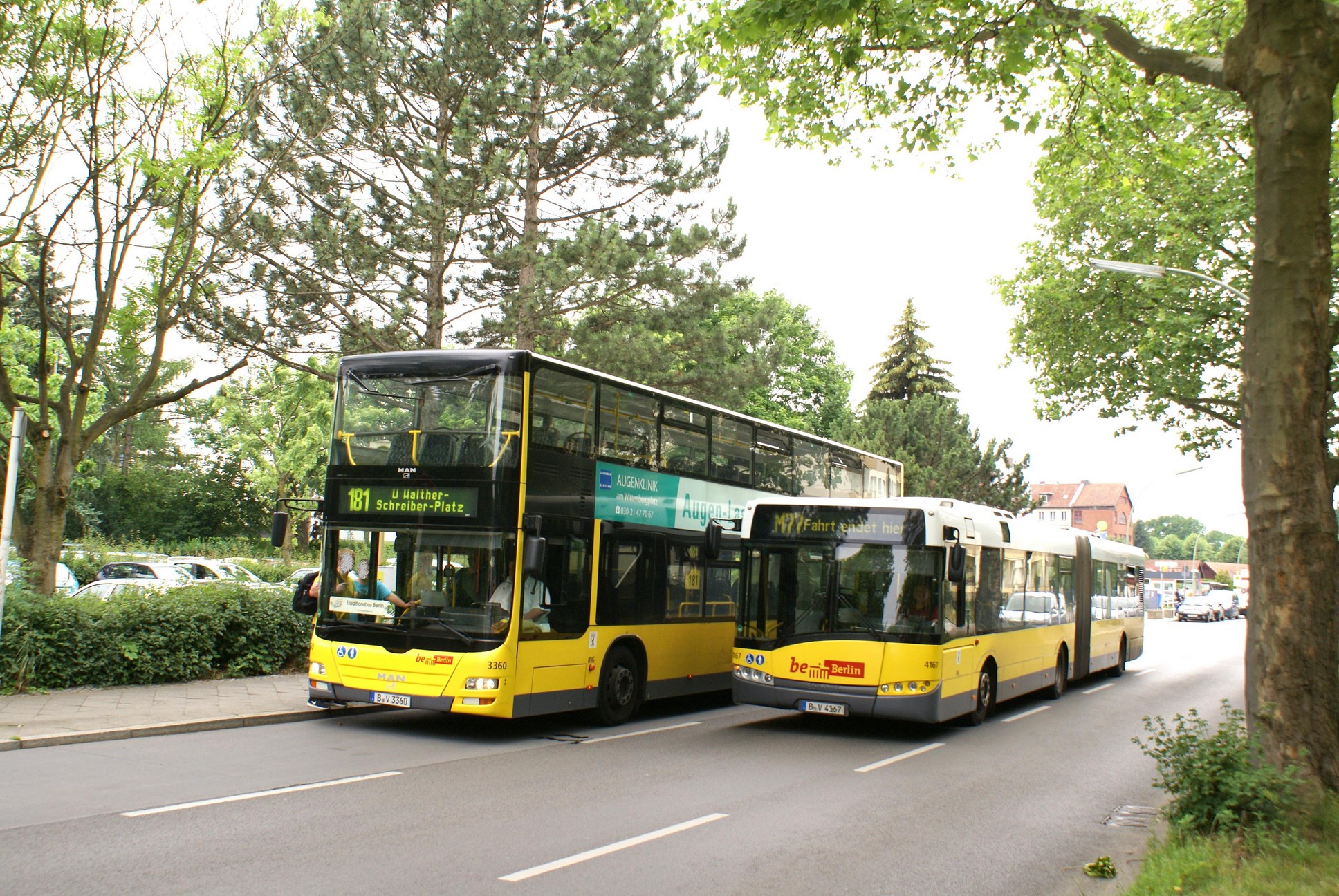 Wagen 2100 der ATB am Walther-Schreiber-Platz, im Hintergrund ist das Schloßstraßen- Center, zur Einsatzzeit der Fahrzeugtype DE befand sich an dieser Stelle noch das Hertie Kaufhaus (1953 unter dem Namen Held eröffnet). Oben ein VDL Citea (Wagen 2347) als X 76 nach Lichtenrade (Nahariyastr.) und unten ein Solaris (Wagen 4161) als M76 zum S- Bhf. Lichtenrade MAN Lion's City DD (Wagen 3116) eingesetzt auf der Linie 181 Begegnung mit Wagen 2626 in der Bismarckstr. An der Haltestelle Albrechstr./Munsterdamm (oben Wagen 1794 u. unten 3178) Begegnung mit 2100 in der Leonorenstr. Wagen 2437 am U-Bhf. Alt-Mariendorf (dem südlichen Ende der U 6) Ein Zug der Baureihe Baureihe F 87 - Gebaut 1986/87 - Anzahl: 21 Einheiten bestehend aus 42 Wagen - Wagennummern: 2802/2803 - 2842/2843 Wagen 3680 am U-Bhf. Alt- Mariendorf 1794 in Alt- Mariendorf Reißeckstr./Mariendorfer Damm Wagen 2626 an der Endhaltestelle Dardanellen Weg Wagen 1242 in der Str. Alt-Mariendorf Wagen 1610 (Mercedes Benz Citaro) eingesetzt auf der Linie 277 neben 3360 (ein LionsCity DD der ATB) VDL 2362 und SOLARIS 4288 auf der Keuzung Mariendorfer Damm/Reißeckstr. Wagen 1957 in der Reißeckstr. (kurz hinter der Kreuzung Forddamm) Wagen 1242 hält vor der Ampel am Mariendorfer Damm Und zuletzt nochmal der 2626, weiter ging's dann mit der U 6 bis Friedrichstr., von da mit der S-Bahn bis Brandenburger Tor und mit der U 55 zum Lehrter Stadtbahnhof (frei nach Herrn Mehdorn auch HBF. genannt). Erstens stand der Lehrter unter Denkmalschutz, Zweitens gab es ein Versprechen der Bahn auf Erhalt des Namens und Drittens ist der Hbf., genauso wie Ost- u. Südkreuz (anstelle Papestr.) nur die Umsetzung von Plänen aus Hitler's Zeiten. Es fehlt nur noch die Umbenennung von Gesundbrunnen in Nordkreuz, aber ich denke das ist dann doch nicht machbar! Halt ein gewisser Größenwahn der gewählten Volksvertreter, genau wie die Verlängerung der U 5 (U 55). Wir hatten auch ohne diese Verlängerung ein dichtes Verkehrsnetz in der City- Ost Regionalbahn, S-Bahn, Bus und bis Lehrter verlängerte Straßenbahn und das alles in Ost-/West Richtung parralel auf "wenigen" Metern verlaufend. Und einen Weiterbau über Moabit und Jungfernheide (vorhandene Bahnsteige) zum Flughafen Tegel wird es nicht mehr geben. |