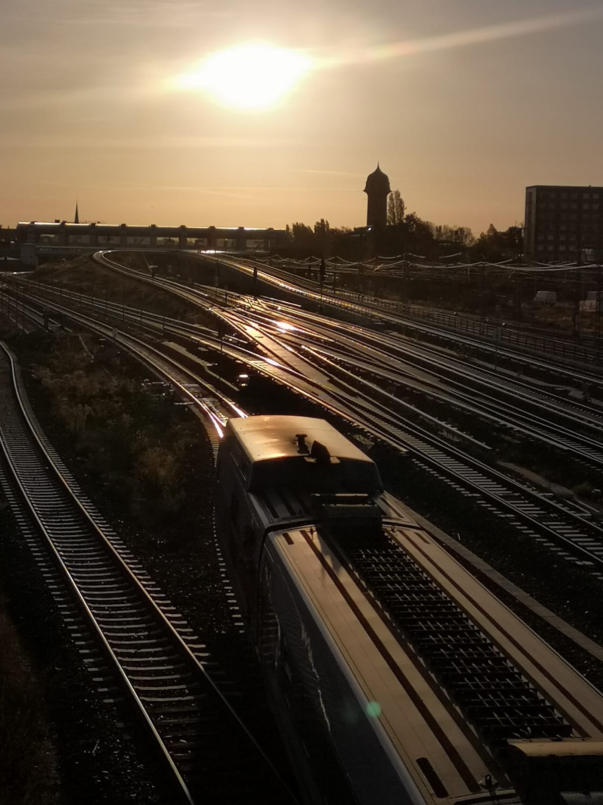 ![]() Boxhagener Ecke Gärtnerstr. ![]() ![]() ![]() ![]() Sonnenaufgang an der Warschauer Straße (Blickrichtung zum Ostkreuz) - links im Bild die Hallen des ehemaligen RAW Franz Stenzer ![]() BR 485 am oberen Bahnsteig (= Ringbahn) des Bhf. Ostkreuz ![]() BR 480 in Berlin- Wannsee |
