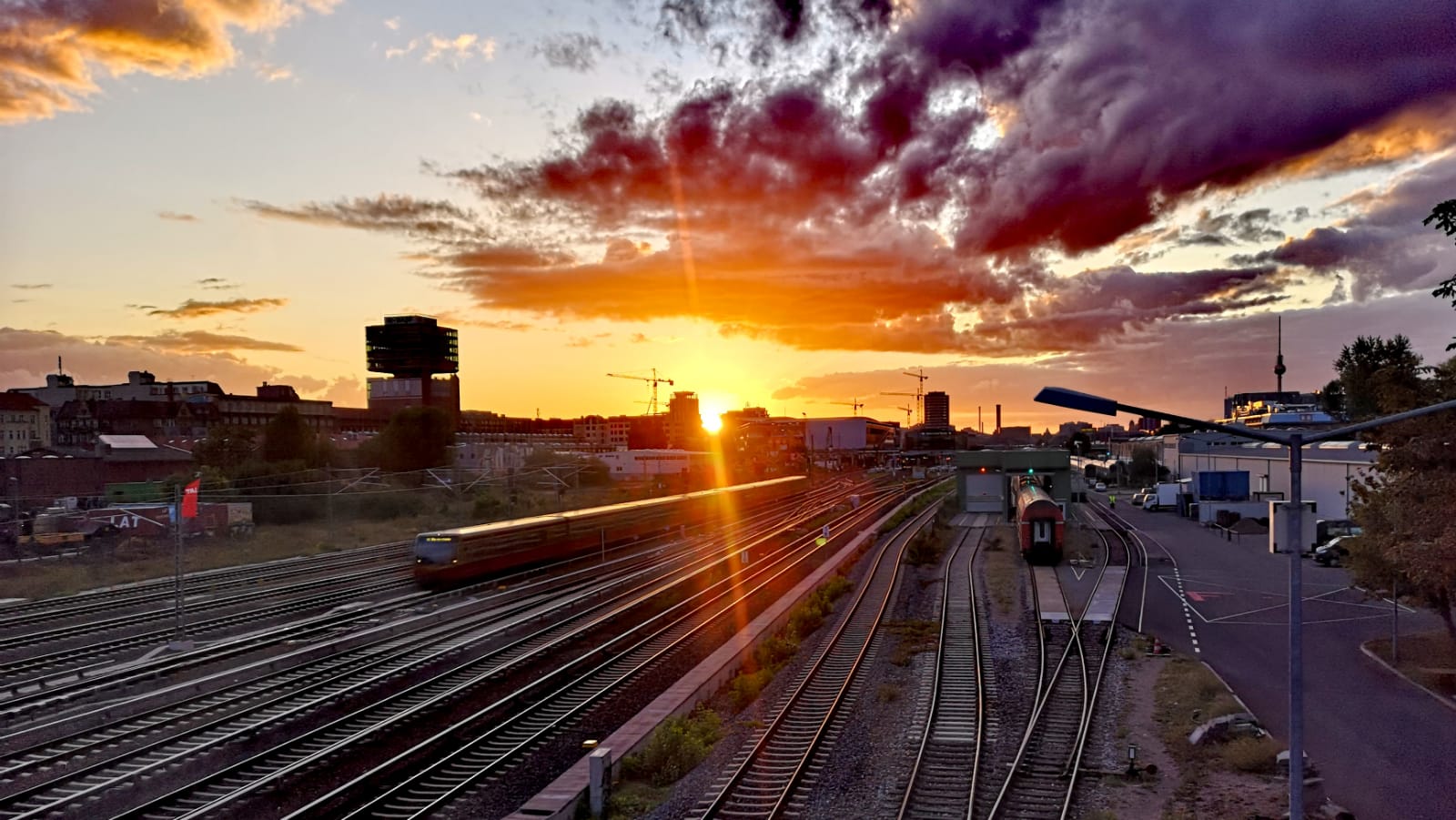 ![]() ![]() Sonnenuntergang aufgenommen von der Modersohn- Brücke in Richtung Warschauer Straße.