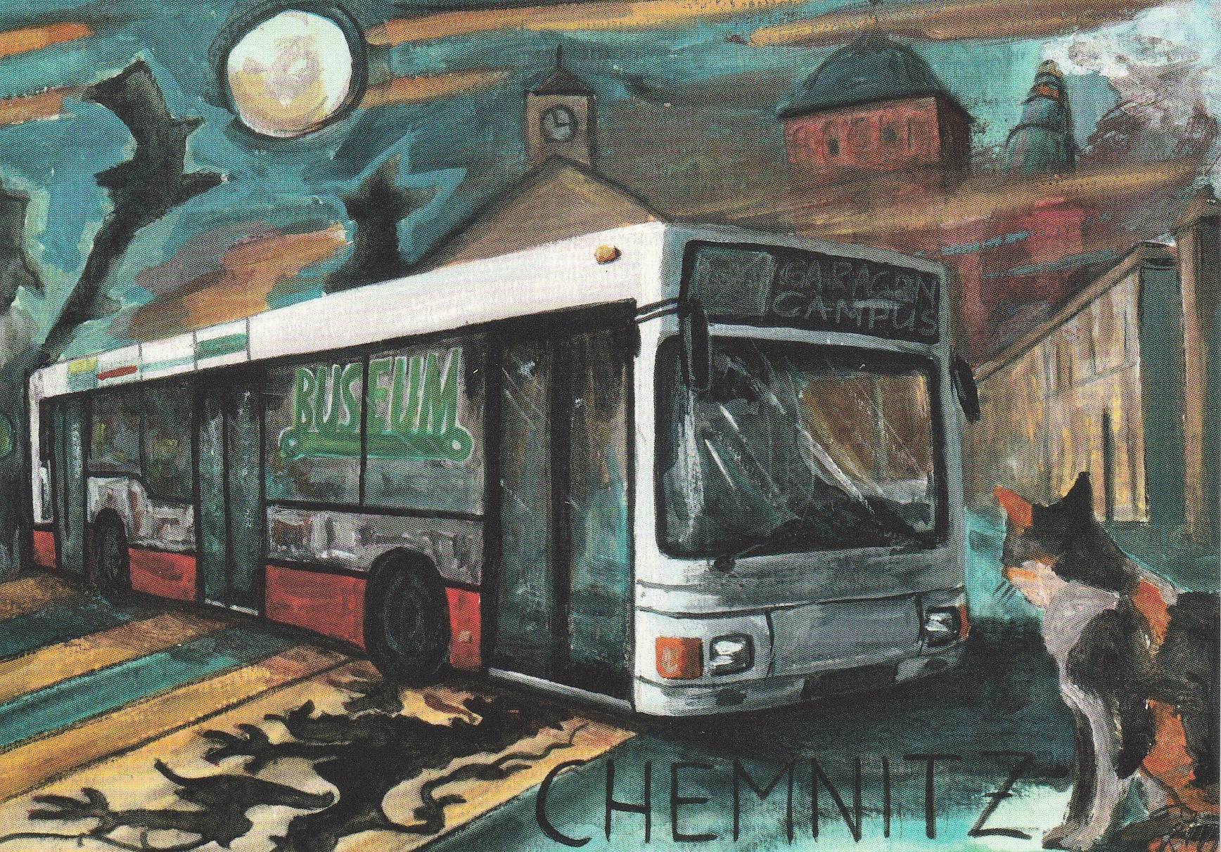 ![]() Werbepostkarte für das Straßenbahnmuseum in CHEMNITZ (Künstler unbekannt) |