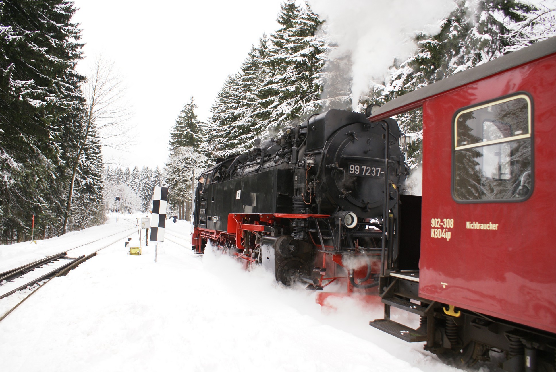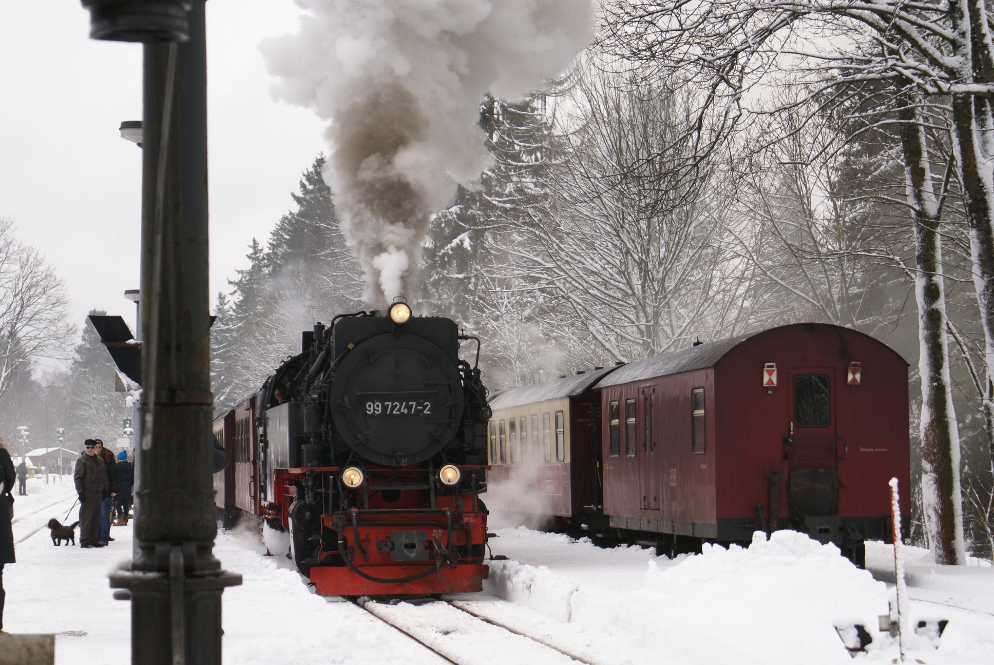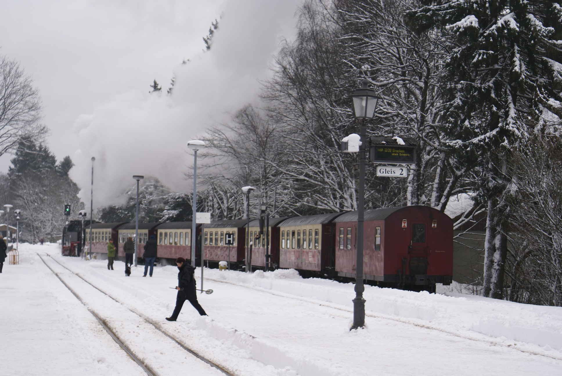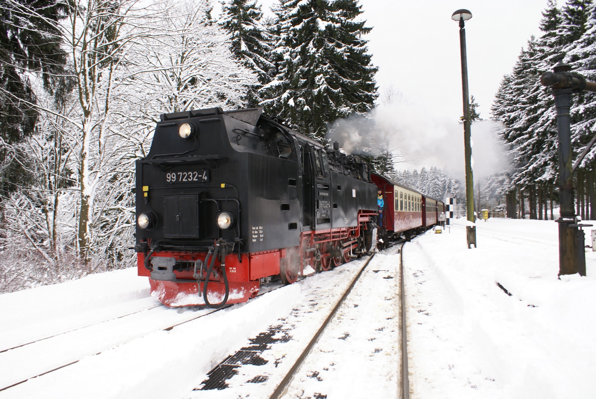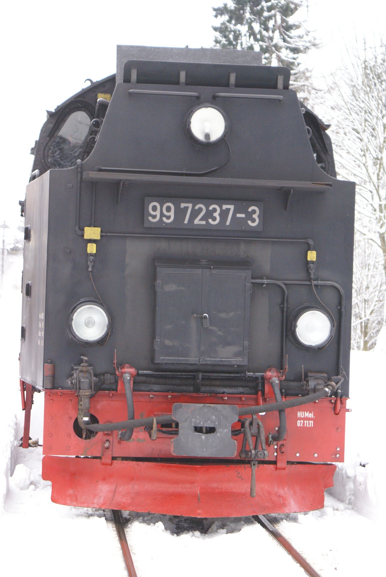 Dringend zu empfehlen ist für Autofahrer die Mitnahme von Schaufel und Besen zur Reinigung eines Parkplatzes! Der Winterdienst ist nämlich micht die besondere Stärke der Stadt Wernigerode!!! Bahnhof Drei Annen Hohne 99 7237 mit dem 8920 aus Nordhausen 99 7247 mit dem 8903 aus Wernigerode 99 7732 mit 8932 vom Brocken |