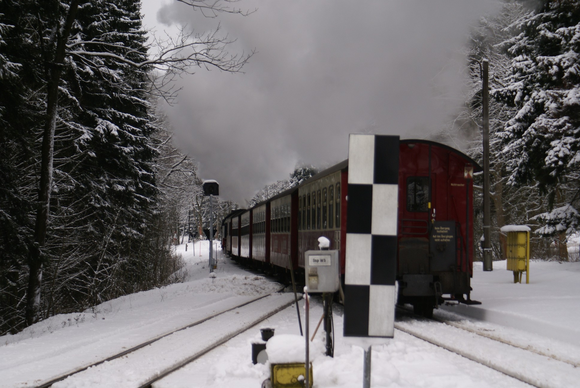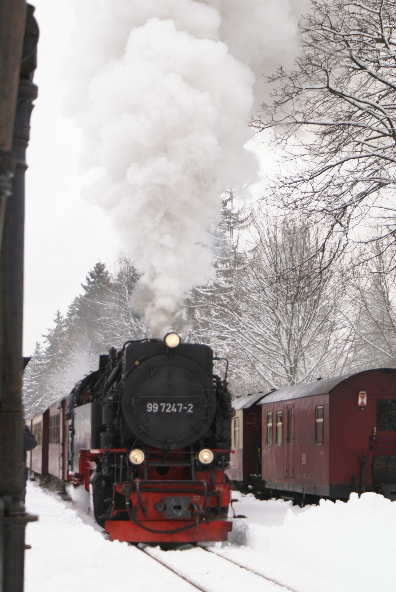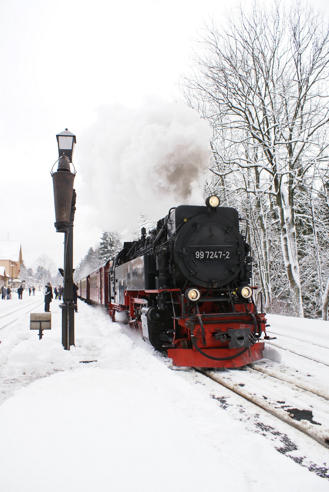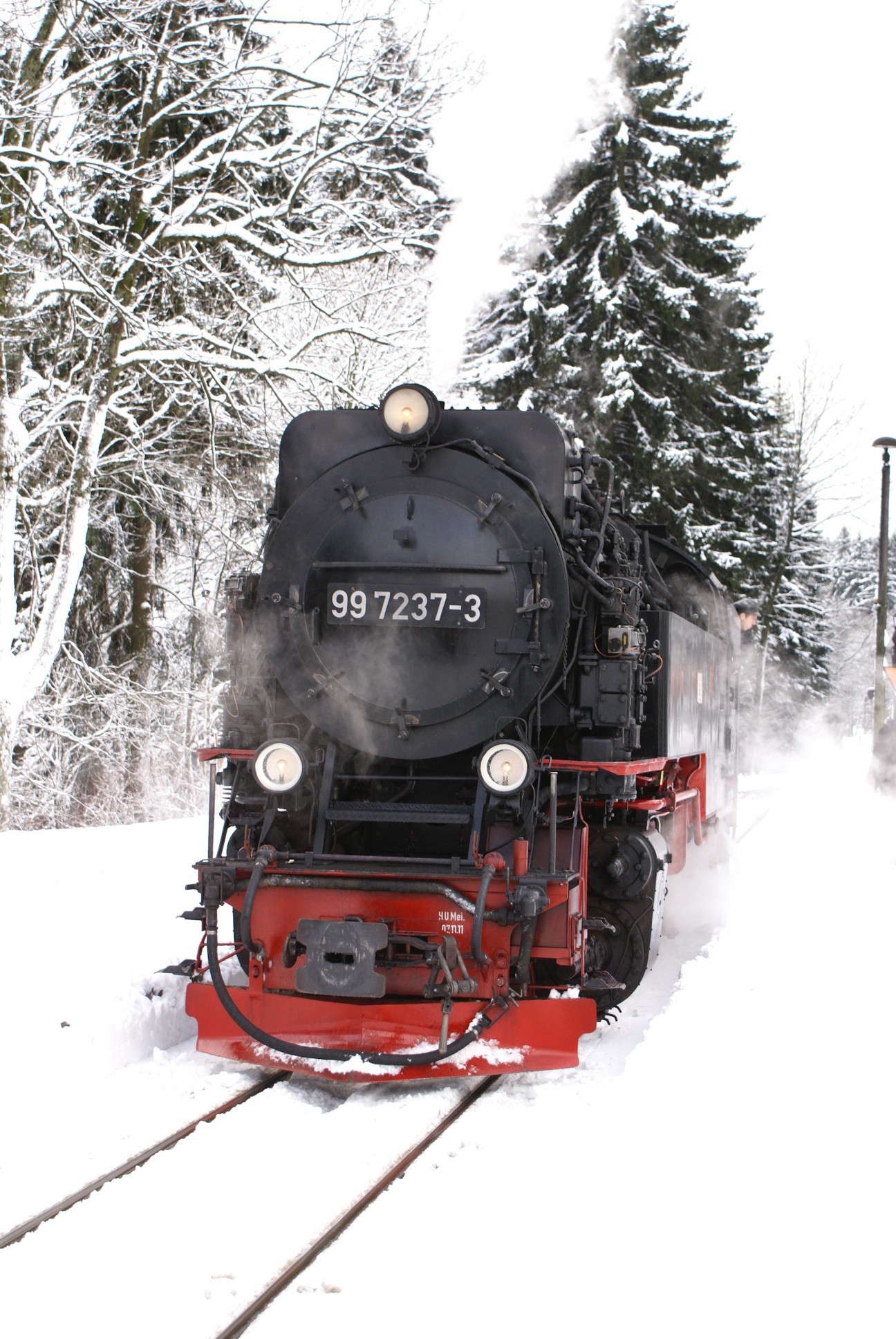 Dringend zu empfehlen ist für Autofahrer die Mitnahme von Schaufel und Besen zur Reinigung eines Parkplatzes! Der Winterdienst ist nämlich micht die besondere Stärke der Stadt Wernigerode!!! Bahnhof Drei Annen Hohne 99 7237 mit dem 8920 aus Nordhausen 99 7247 mit dem 8903 aus Wernigerode 99 7732 mit 8932 vom Brocken |