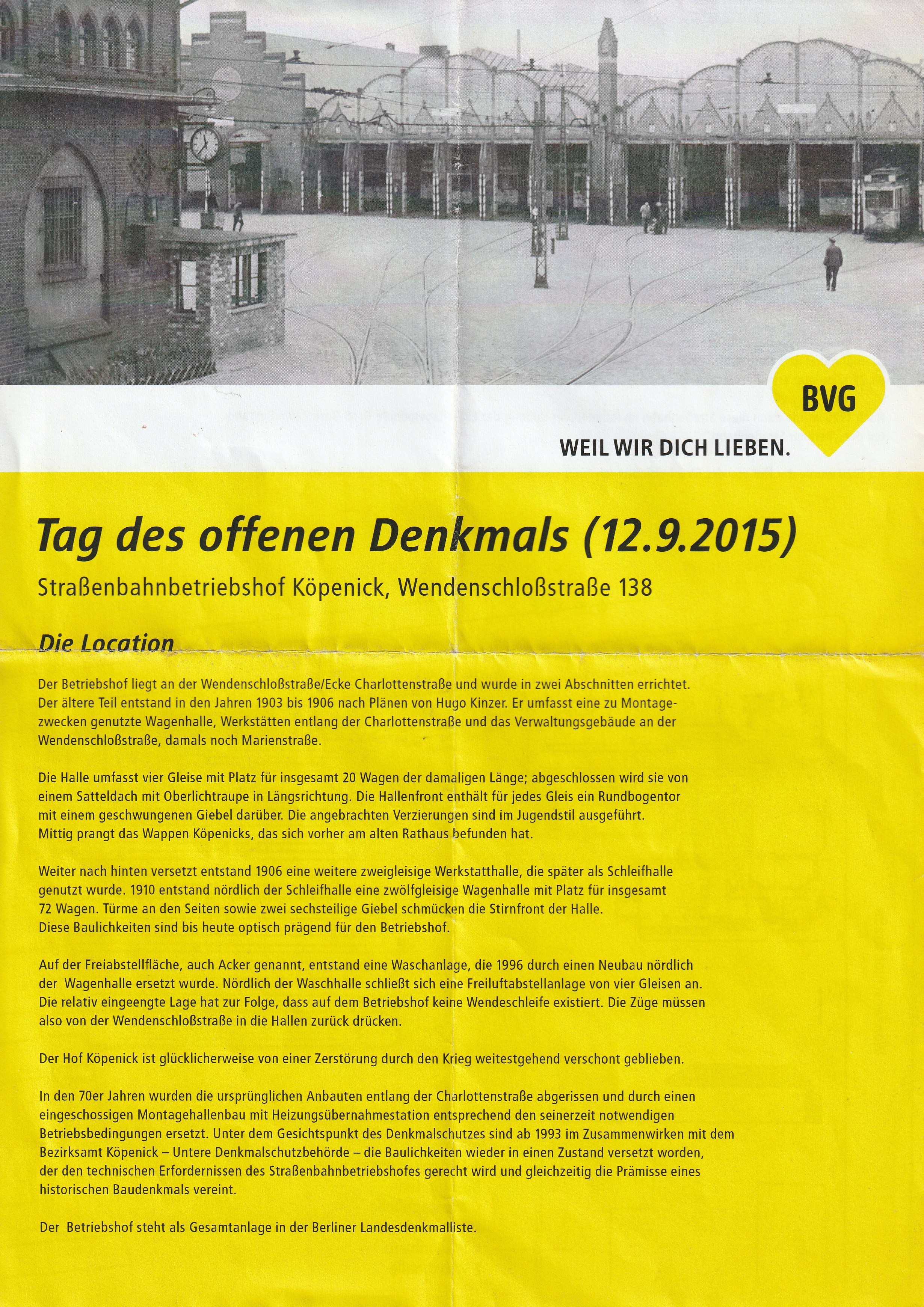 Der offizielle Flyer der BVG zum Tag des offenen Denkmals am 12.09.2015